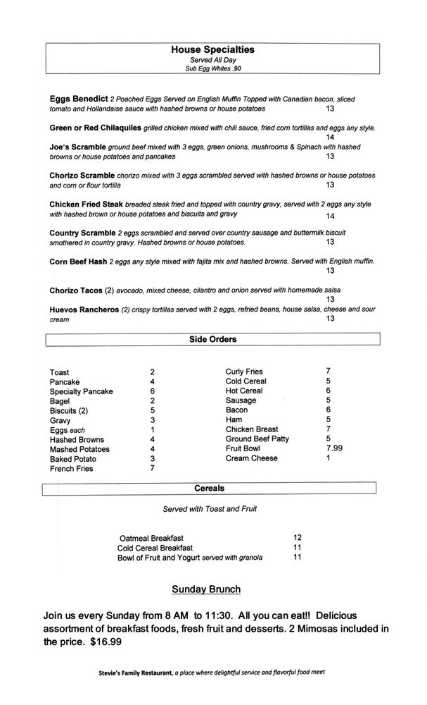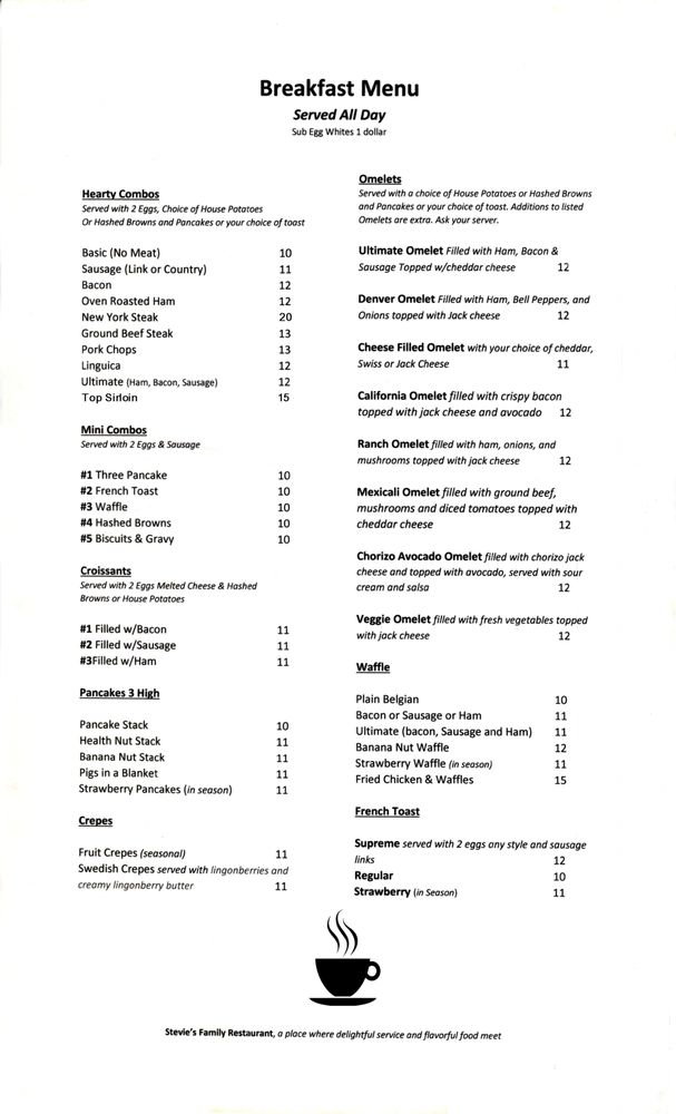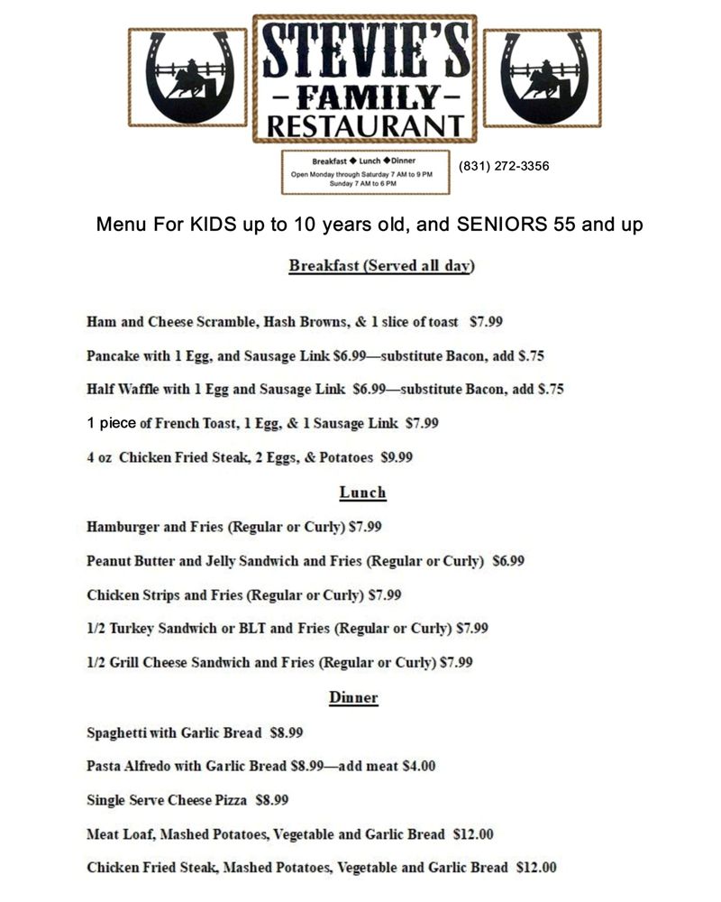 Welcome to Stevies Family Restaurant, a hidden gem located at 17629 Vierra Canyon Rd, Prunedale, CA. This charming eatery specializes in American breakfast and brunch, making it the perfect spot for families and food enthusiasts alike.